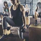 If you've ever carried a suitcase or bags of groceries up a few flights of stairs, you know how intense it can be. Your heart is pumping, your legs and butt are burning, and your arms are toast by the time you get to the top. You can replicate that exact feeling with a box and a pair of weights for the ultimate total-body move.