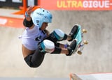 Even today, she's self-taught. "Skateboarding is a playground," she told the official Olympics blog. "I don't really train. I don't have a coach. I just skate." While Sky said she plans to learn some new skills for Tokyo, she's already got some pretty impressive tricks in her repertoire. Ahead, check out some of her competitive highlights and interviews, and expect to hear a lot more from her when the Olympics kick off on July 24.