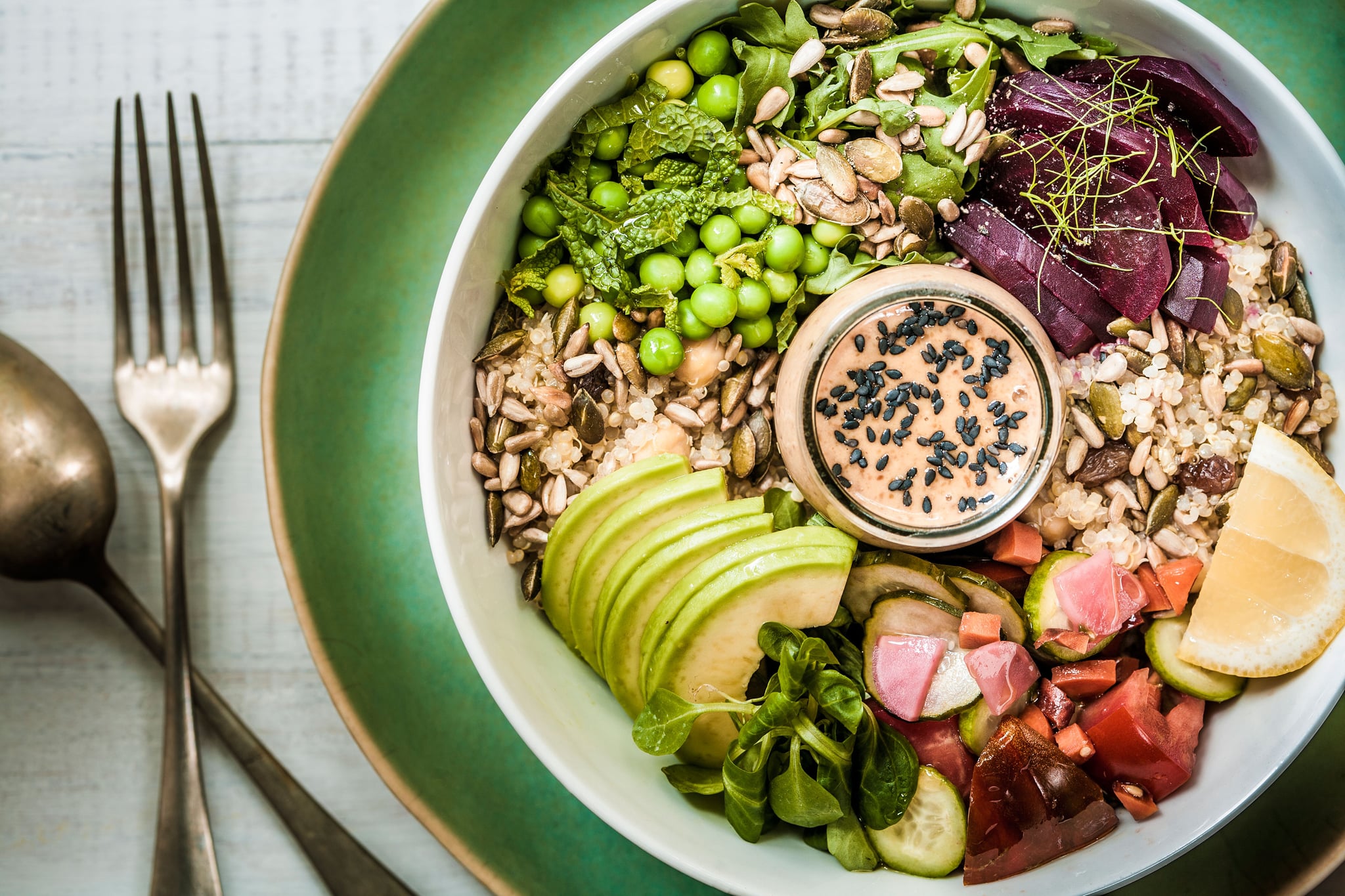 I try to eat one ginormous salad once a day, and lately I've been following this expert's tip. Registered dietitian Leslie Langevin, MS, author of The Anti-Inflammatory Kitchen Cookbook, suggested eating more pumpkin seeds. Rich in heart-healthy omega-3 anti-inflammatory acids, raw pumpkin seeds are also jam-packed with hunger-satiating protein and fiber to help you feel fuller longer. A three-tablespoon serving offers nine grams of protein and two grams of fiber for just 150 calories.